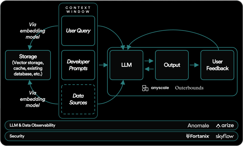 Observability—the ability to monitor and understand what’s happening inside the model based on its outputs and other visible signals—is similarly key for enterprise use cases. It allows ML engineers, software developers, and data scientists to ensure that the LLM is behaving as expected, identify and tackle problems when they emerge, and gain insight into ways that the LLM can be iteratively improved. Anomalo offers fully automated data quality and monitoring, while Arize provides a suite of tools for evaluating LLM outputs, pinpointing areas for prompt-engineering improvement, and identifying fine-tuning opportunities.
