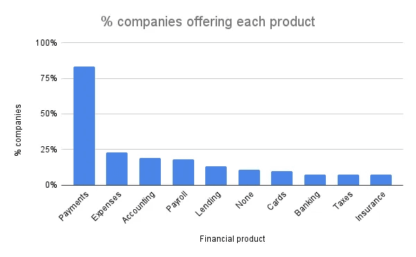 The impact of generative AI on banking promises to be far greater than cost reduction and process optimization. This technology is fundamentally changing what's possible in financial services. Investor Matt Brown's research into embedded finance adoption reveals an interesting pattern: while payments have successfully integrated into vertical software companies, other financial products (such as expenses, accounting, and lending) have struggled to achieve similar penetration.