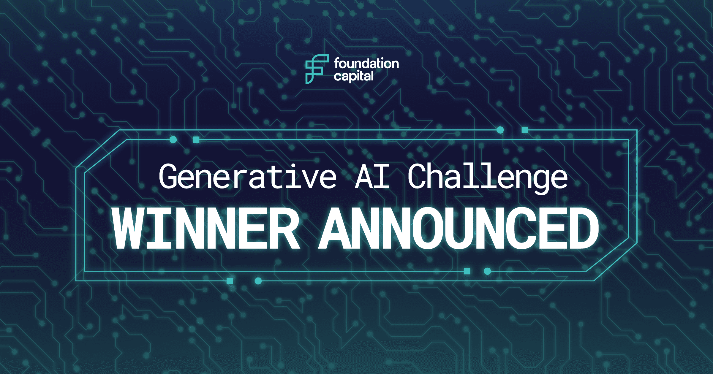 A sincere “thank you!” to everyone who shared their startup ideas. We were truly blown away by the caliber, talent, and foresight of the entries that we received, and we hope to partner with many of the entrepreneurs who participated in the years to come. If you’re building with generative AI, we’d love to hear from you! Feel free to reach out at jkaehms@foundationcap.com or jchen@foundationcap.com.