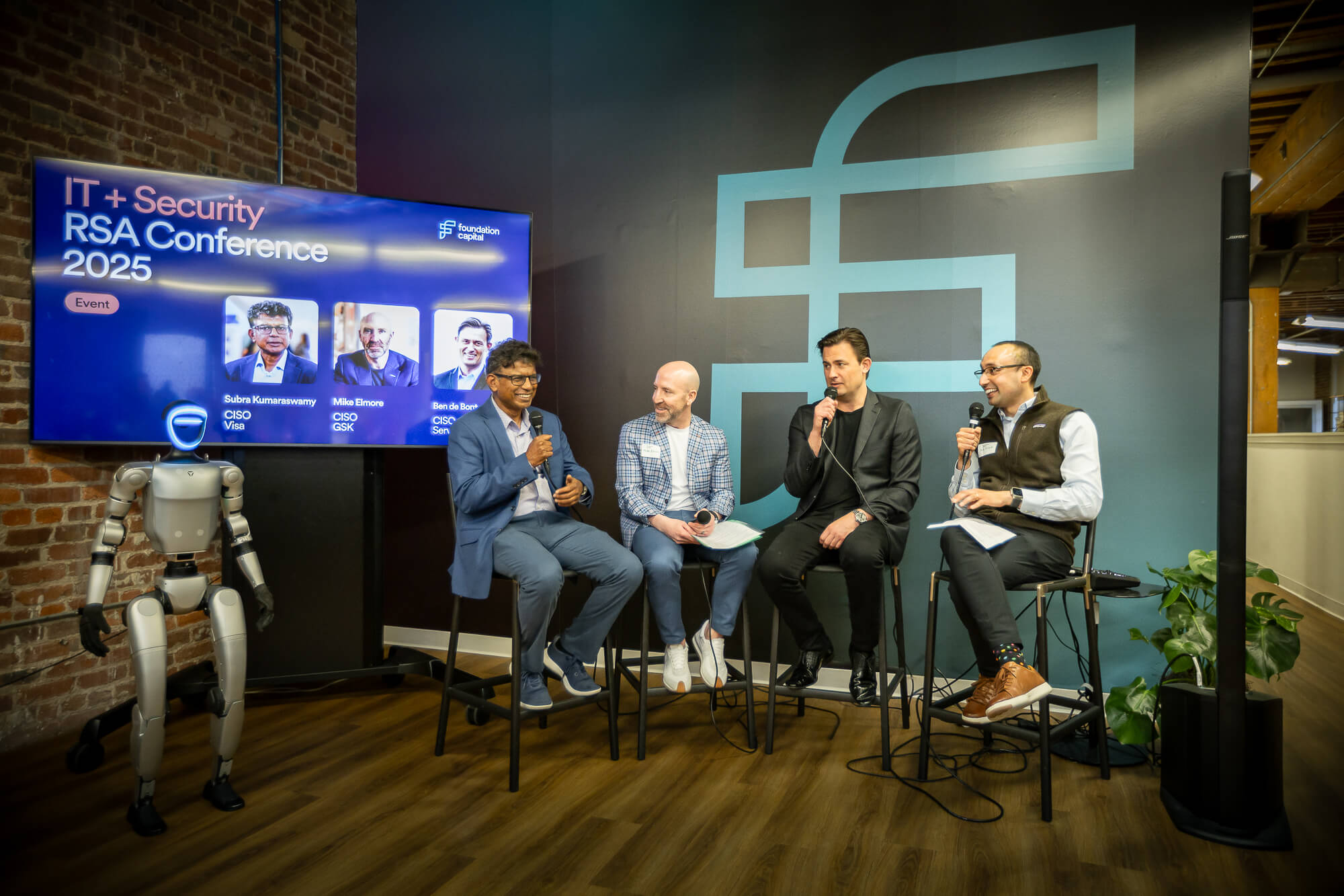 At Foundation Capital’s 7th annual RSAC Happy Hour, we had a record-breaking turnout for an engaging fireside chat featuring Subra Kumaraswamy (CISO at Visa), Mike Elmore (CISO at GSK), and Ben de Bont (CISO at ServiceNow). Over 70 leading CISOs and CIOs, 20 innovative early-stage founders, and 20 influential channel and M&A leaders from across the globe came together for a vibrant discussion about the future of cybersecurity.