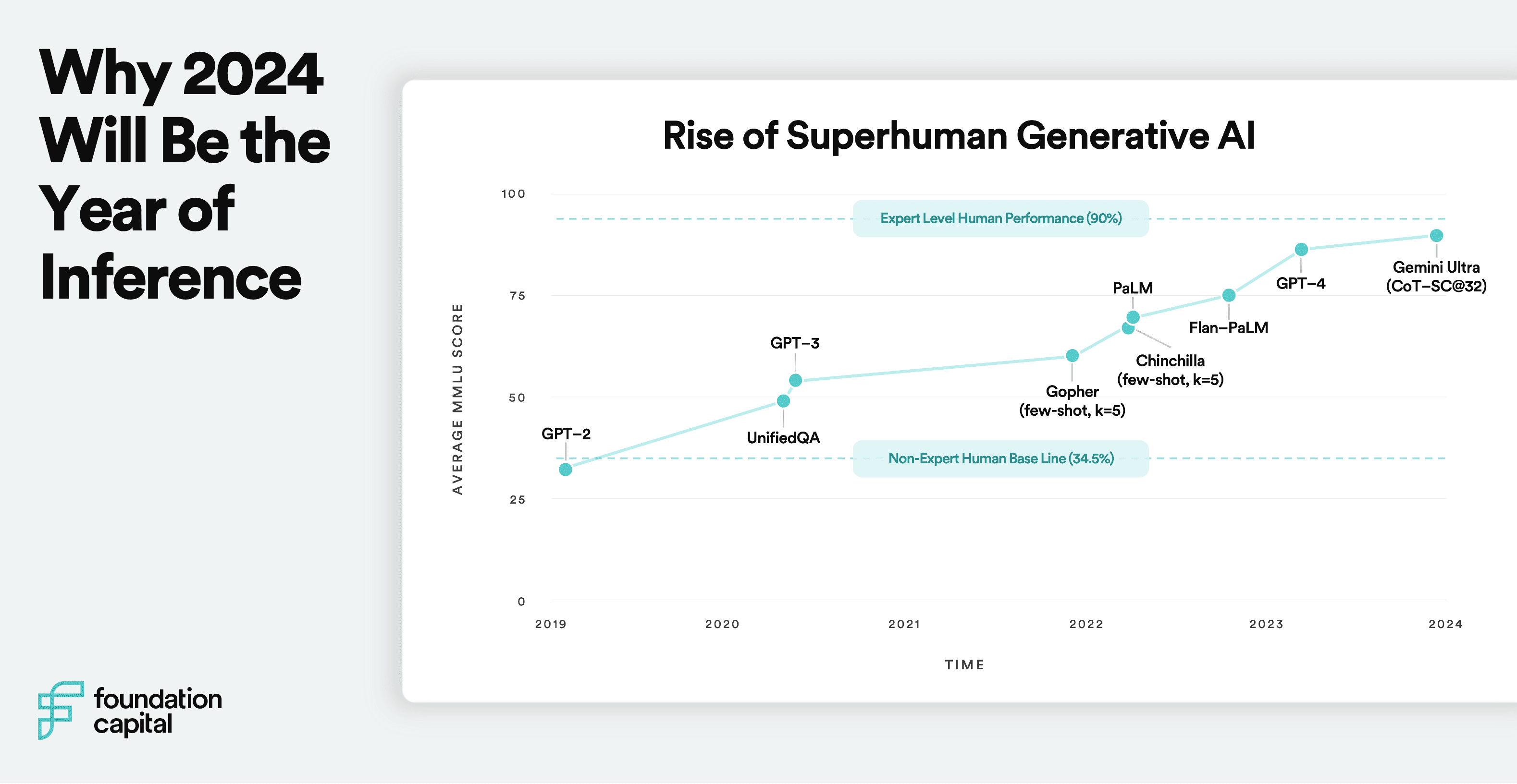 The performance of pre-trained models signals the training era is over. We believe 2024 will be the year of LLM inference — developers taking models and putting them into production for real world applications.